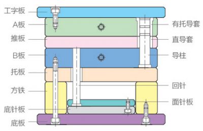 大水口模架 (又稱單分型面模架), 標(biāo)準(zhǔn)長闊尺寸由 150mm x 150mm (簡稱1515系列) 至 600mm x 800mm (簡稱6080系列); 因不同之A板, B 板, 推板及托板組合, 共分 A, B, C, D 四個(gè)型號。 而模架因碼模結(jié)構(gòu)不同, 而有工字模 (I型), 直身模 (H型)及直身模加面板 (T型) 三類, 結(jié)合 A,B,C,D 四個(gè)型號, 標(biāo)準(zhǔn)大水口模架共有 12 種不同型號規(guī)格, 模具制作者可因應(yīng)產(chǎn)品要求而配置不同之板厚組合。
